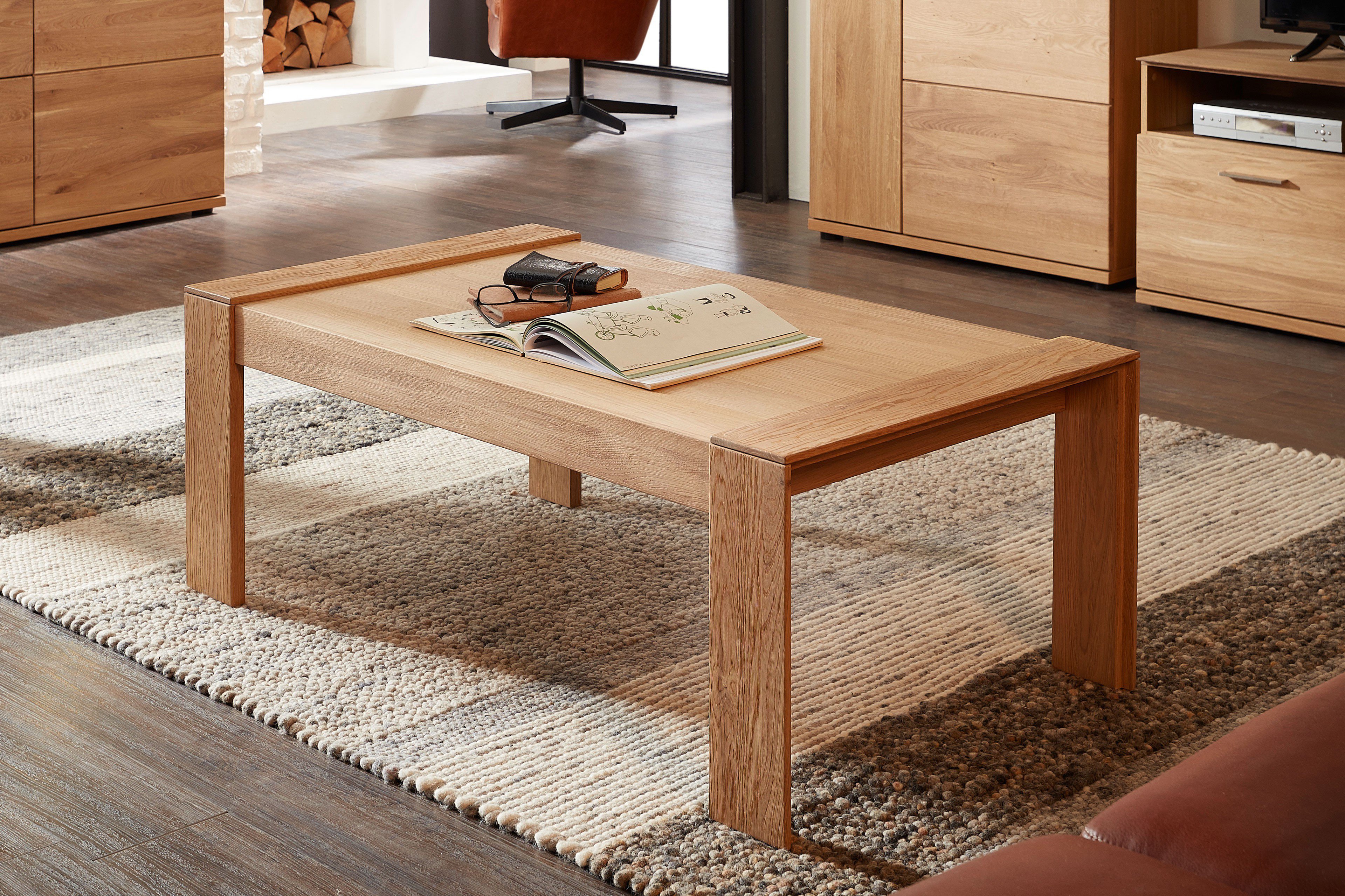 Natürliche massivholzmöbel aus wildeiche für eine warme atmosphäre im raum.