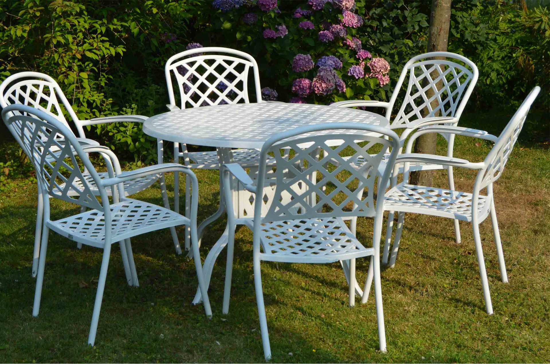 Weiße gartenmöbel im landhausstil sind immer wieder ein blickfang im garten.die lieferung der weißen gartenmöbel nach celle, hannover, wolfsburg, braunschweig, magdeburg, göttingen.